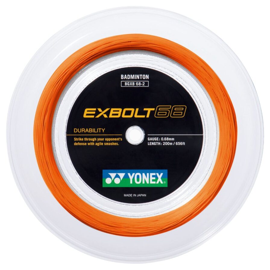Yonex Exbolt 68 Flash Orange 200m er ideel til spillere, der ønsker en stærk og holdbar streng med masser af power i slagene. Med en diameter på 0,68 mm får du en robust streng, der kan modstå høj belastning og samtidig levere en solid og kraftfuld respons. Den er perfekt til både træning og kamp, hvor du har brug for stabil performance over længere tid.